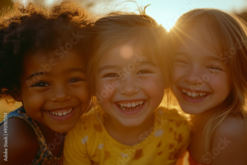 A group of children are playing happily in the sun. Children of different skin colors and nationalities are suitable for education and peace, showing strong tolerance.