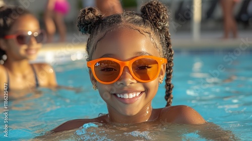 children, pool, sunglasses, summer, fun, family, outdoors, joy, playful, water, smile, happiness, photo, colourful, vibrant, childhood, holiday, vacation, swim, friends, innocence, carefree, sun, group, togetherness, poolside, splash, brightness, leisure, young, cute, adorable, sunny, friendship, joyful, vivid colors, sunny day, laughter, summer getaway, glowing, lively, active