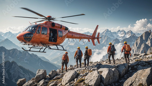 climber, rocky, mountain, rescue, helicopter, peak, summit, altitude, rugged, terrain, ascent, group, operation, emergency, chopper, pickup, snow, cold, team, coordination, flight, mountaineering, effort, danger, harness, gear, equipment, view, panorama, isolation, sky, cloud, weather, climb, teamwork, assistance, survival, adventure, height, challenge, ship, sea, boat, water, transportation