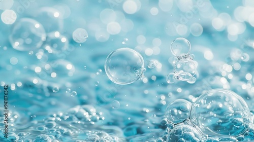 A group of colorful bubbles rising from a blue surface