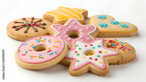A group of cookies placed on a white background.