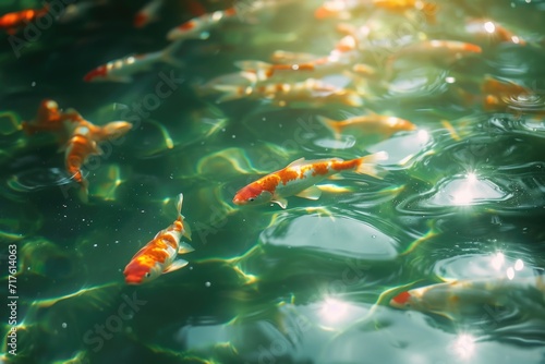A group of fish swimming together in a pond. Perfect for aquatic-themed designs and educational materials