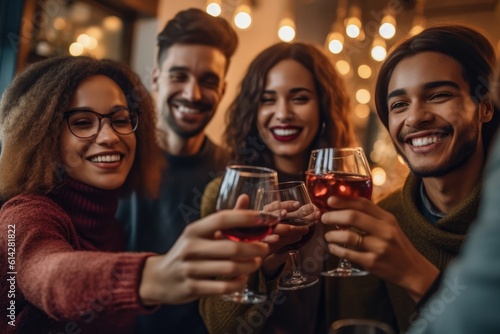 A group of friends as they toast and celebrate in a close - up shot. Generative AI