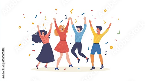 A group of friends dancing at a celebration, with a clear background providing space for text.