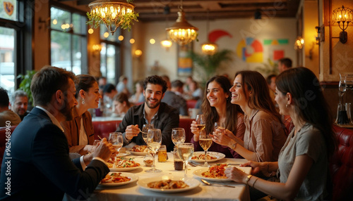 eatery, meal, friends, socialising, table, conversation, fun, camaraderie, gathering, food, drink, group, laughter, relaxation, happy, enjoyable, dinner, menu, service, atmosphere, togetherness, friendship, social, indoor, interaction, connection, table setting, favor, together, chatting, community, waiter, people, woman, family, eating, cafes, couple, smiling