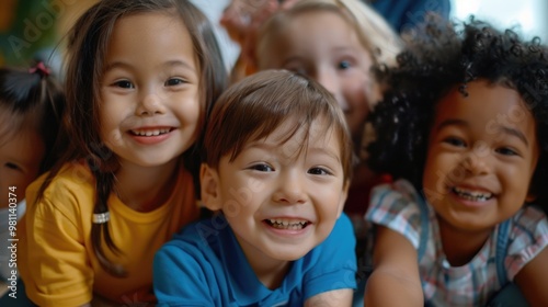A group of happy and relaxed young children lying down on the floor, perfect for illustration or design concept