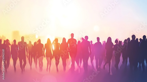 metropolis, dawn, group, individual, jogging, energy, motivation, vibrant, colours, orange, yellow, pink, inspiration, activity, health, fitness, wellness, urban, landscape, background, silhouette, figure, motion, speed, pace, rythm, beat, pulse, life, vitality, force, drive, ambition, passion, desire, goal, aspiration, achievement, success