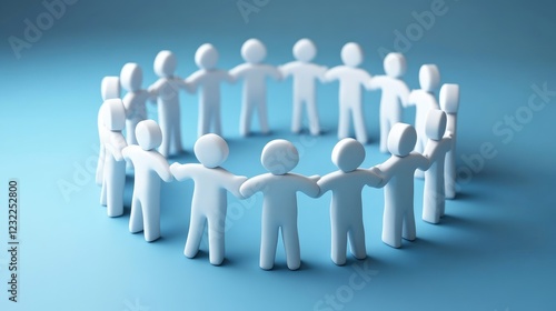 A group of interlocking puzzle pieces symbolizing teamwork, bright blue backdrop.