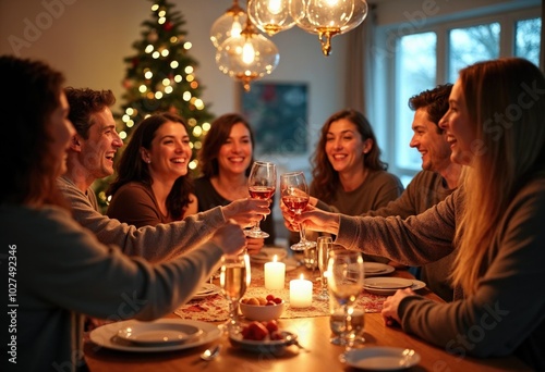 group, people, table, enjoying, meal, toasting, wine, christmas, festive, warm, dinner, atmosphere, food, goggles, celebrate, laughing, smiling, together, family, friends, home, eating, indoor, christmas, cheerful, man, holiday, party, adult, happy, traditional, new year, happiness, fun, woman, winter, drink, lifestyle, togetherness, generation, decoration, hispanic, leisure, beautiful, joy, sitting, feast, tree, love