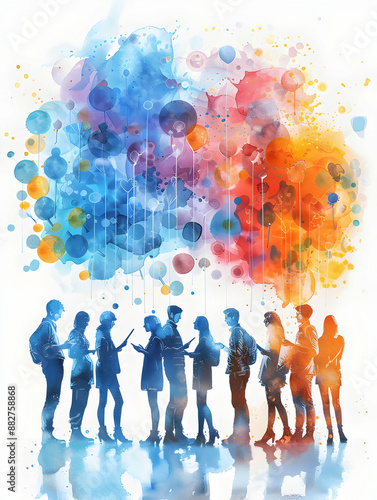 A group of people developing watercolor business models with tablets isolated on white background � 3D flat icon with dreamy and creative concept for seamless blend of creativity a