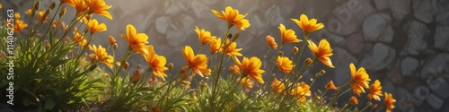 A group of vibrant yellow and orange flowers swaying in the breeze , florales, viento