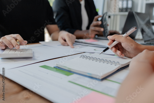A group of young people join together to form a startup company, Close-up view of the meeting situation in the presentation room, Work together as a team,Business persons on meeting in the office.