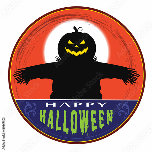 halloween, pumpkin, autumn, vector, holiday, illustration, horror, celebration, orange, night, scarey, dark, october, cartoon, skittish, moon, black, fear, silhouette, art, design, symbol, evening, scarecrow, straw, glow, happy, typeface, green