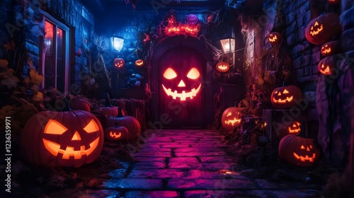 hallway, door, scarey, face, many, pumpkin, ground, halloween, skittish, eerie, dark, holiday, horror, autumn, orange, lantern, evil, night, celebration, jack, decorative, glowing, october, head, symbol, fear, light, candle, ghost, carved, background, creepy, jack-o-lantern, smile, traditional, black, fire, season, party, laughing, burning, fun, vegetable, haunting, yellow, fall, treat, grinning, trick
