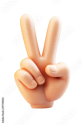 A hand forming the peace sign, with two fingers extended and the others curled, is shown on a transparent background.