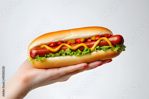 fast, hot dog, mustard, bun, hot, sausage, snack, ketchup, eat, bread, food, dog, meat, tasty, hand, sauce, yellow, meal, delicious, isolated, lunch, dinner, grilled, unhealthy, background, american, ravenous, bar-b-q, cookery, junk, white, traditional, beef, fast food, closeup, sandwich, grill, frankfurter, holding, wiener, hot dog, woman, fats, calorie