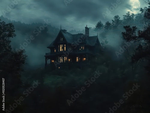 haunt, luxury home, hill, surround, dense, tree, moonlight, pierce, misty, folklore, landscape, presence, stillness, enchant, spook, horror, watcher, tranquil, whisper, allure, twilight, phantasm, viewpoint, scape, charme, specter, terrain, spooked, shadow, legend, serene, echo, skittish, wood, atmosphere, abandon, foliage, silhouette