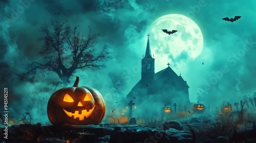 pumpkin, moon, church, bat, cemetery, tree, fog, skittish, scarey, night, halloween, candle, darkness, eerie, shadow, creepy, atmosphere, ghost, mystery, haze, haunted, landscape, moonlight, mist, carved, autumn, spectral, landmark, night time, silhouette, spider's web, spirit, gloomy, twilight, ominous