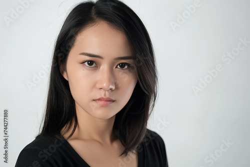 woman, head shot, serious, dark hair, blacktop, young, intense, portrait, female, gaze, expression, fashion, style, natural, look, person, youth, elegance, simplicity, beauty, contemplation, confident, trendy, facial expression, culture, identity, casual attire, sophistication, femininity, calm, introspective, modern, appearance, demeanor, poise, attitude, presence, character, personality, natural light, thoughtful, focused, individuality, authenticity, real people, determination