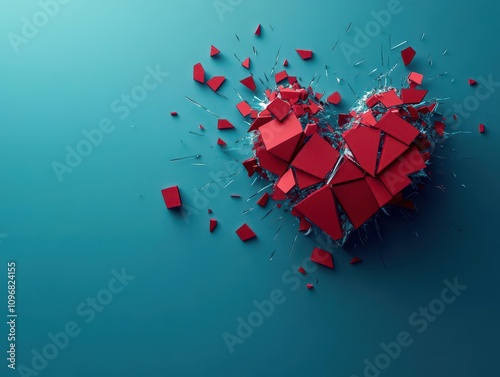 A heart made of shattered glass, representing heartbreak and loss, realistic shards, cool colors, high contrast, digital art