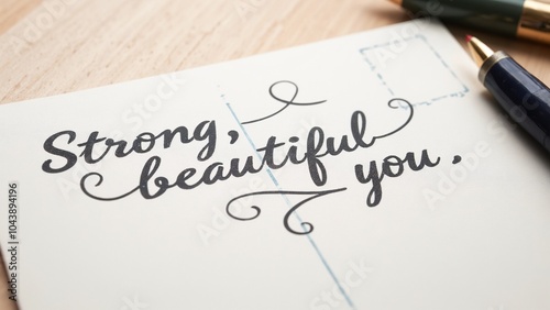 A heartfelt message crafted in elegant calligraphy inspires strength and beauty in a handwritten note on a wooden surface