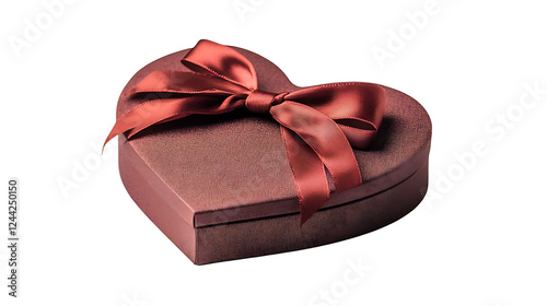 A heart-shaped box with silk red ribbons, isolated on white background in HD