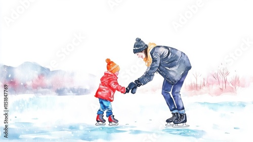 A heartwarming scene of a parent teaching their child to skate on ice, fostering joy and connection during wintertime adventures.