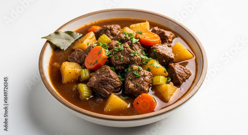 stew, beef, food, meal, dinner, soup, dish, bowl, meat, cooked, goulash, hearty, homemade, traditional, vegetable, potato, carrot, delicious, warm, lunch, brown, sauce, gravy, hot, receipe, cookery, epicure, comfort, savoury, fresh, healthy, rustic, classic, casserole, ragout, parsley, herb, celery, background, white, closeup, tasty, rich, thick, tender, chunky, braised, slow