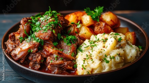 beef, stew, comfort, hearty, food, plate, meal, nourishment, satisfaction, favor, emotion, warmth, tradition, cosy, savoury, artistic, rustic, 21st century, presentation, dish, ingredient, cooking, home cooking, sauce, texture, life events, taste, culinary, quality, epicure, atmosphere, wholesome, family, happiness, gathering, delicious, exquisite, inviting