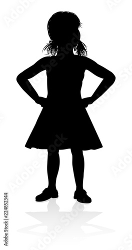 A high quality detailed kid or child in silhouette playing and having fun