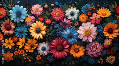 A highly detailed and vibrant botanical illustration created with Generative AI technology