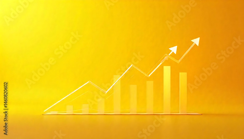 “A high-quality business-themed image with a bright yellow background. In the center, a dynamic line graph with rising and falling trends, representing business performance or stock market analytics.