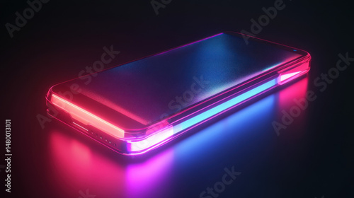 A high-tech smartphone with glowing edges, futuristic holographic effects emerging from its sleek design.