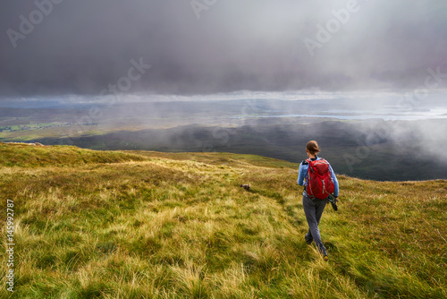 hiker, dog, mountain, walking, scotland, hiking, leisure, scottish, highland, hike, walk, lifestyle, mountain, stroll, explore, activity, adventure, sport, walker, outdoors, countryside, landscape, hillside, backpack, recreation, wilderness, ramble, grass, trekking, trek, hill, hill, mist, journey, travel, cloudy, adult, female, british, isle, britain, gb, britain