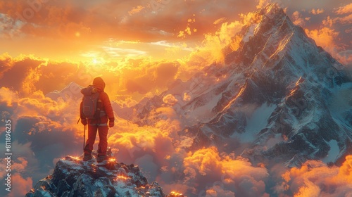 A hiker stands on a ridge at sunrise