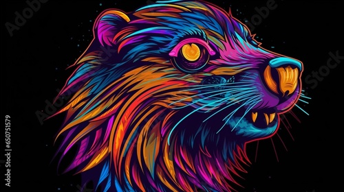 a hip colorful Nutria head design with a futuristic.Generative AI