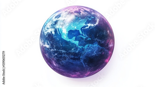 A holographic projection of Earth displaying ozone data, futuristic technology and science communication, neon cyber-style, isolated on white background,