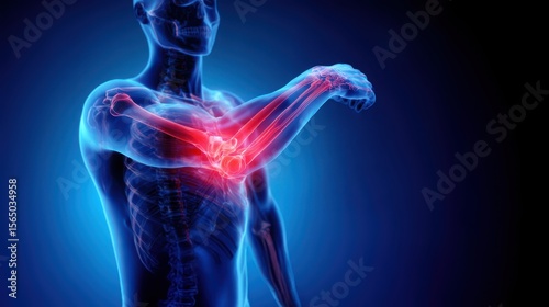 A human figure holding their arm in pain, showcasing joint discomfort and strain. Emphasizes uncomfortable arm joint pain and the importance of joint strength