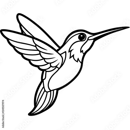a hummingbird is gracefully in flight, captured in a clean, minimalistic design