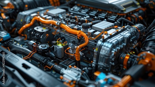 A hybrid engine's inverter and power electronics, illustrating the advanced technologies used to manage multiple power sources in modern vehicles.