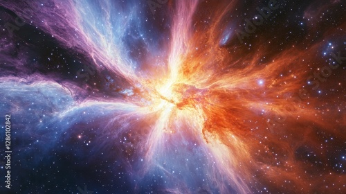 A hyper-detailed cosmic storm sends massive energy waves through a luminous nebula