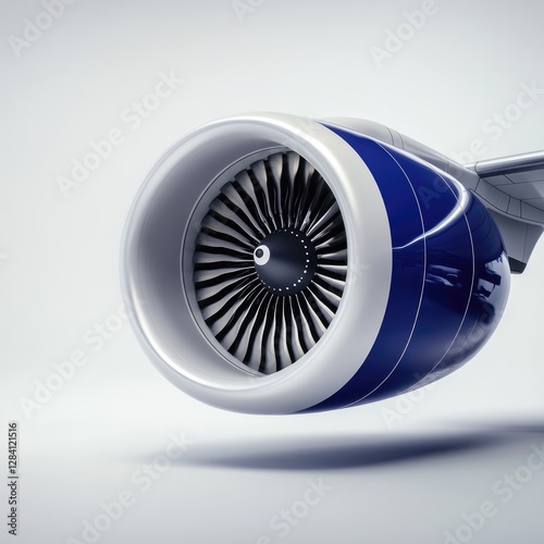 aeroplane, turbine, engine, jet, aircraft, fan, travel, flight, aviation, technology, blue, white, grey, transportation, modern, render, design, view, air, closeup, zoom, detail, blade, abstract, model, plane, wing, metal, front, grey, light, shiny, background, shadow, blur, detail