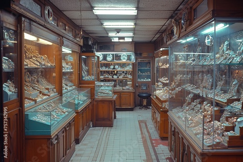 A jewelry store in the heart of the Diamond District in New York, with glittering diamonds and gemstones