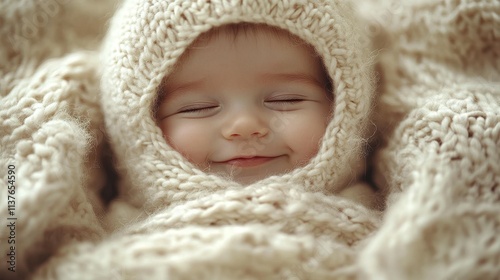 baby, smile, knitted, blanket, cosy, winter, indoor, happiness, warmth, comfort, soft, infant, cute, peaceful, children, light, texture, toddler, bliss, joy, cuddle, home, lifestyle, atmosphere, adorable, resting, serene, moment, love, family, innocence, cuddled, expression, traditional, clothing, beautiful, playful, nurturing, tender, delightful, charming, endearing, happy, environment, natural, soothing