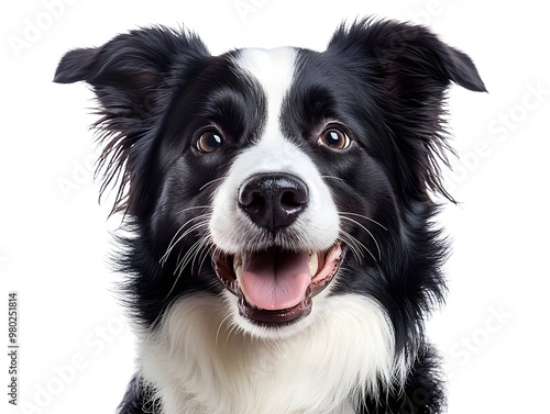 A joyful black and white border collie with an expressive face and bright eyes, perfect for pet lovers and animal-themed projects.