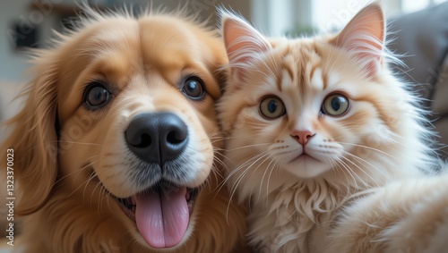 dog, cat, friendship, pet, animal, companion, yellow, retriever, fluffy, purr, family, showcase, delight, lively, joyful, social, gold, adorable, comfort, moment, companionship, playful, charming, energy, cat, photograph, together, heartwarming, warmth, interaction, human relationships, entertain, character, portrait, nature, expression, playtime, duet, furry, whisker, creature, connection, cuddly, activity, friends, puppy, happy, lovable, spirit