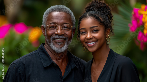 smiling, man, woman, tropical, garden, flower, vibrant, sunny, afternoon, cheerful, pose, happiness, nature, lush, greenery, portrait, human relationships, connection, family, friends, beauty, joy, casual attire, attire, festivity, togetherness, warmth, expression, plant, colours, decor, celebration, scene, smile, interaction, candid, love, laughter, skin, tone, diversity, harmony, background, brightness, intimacy, culture, emotion, gathering