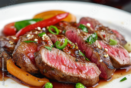 steak, beef, meat, food, cooked, juicy, dinner, epicure, steamed, vegetable, eatery, kitchen, protein, plate, delicious, flavorful, savoury, grilled, roasted, pepper, pea, sauce, white, closeup, meal, dish, vegetable, pork meat, cookery, roast, grill, lunch, fried