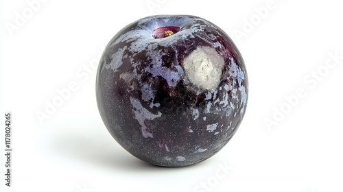 A juicy plum with a rich purple skin and a hint of red on a white isolated background