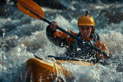 kayak, woman, female, paddle, river, water, kayak, lake, summer, adventure, activity, sport, nature, recreation, paddling, smiling, happy, sun, sunlight, splash, joy, energy, healthy, exercise, travel, vacation, escape, freedom, relaxation, green, blue, yellow, orange, brown